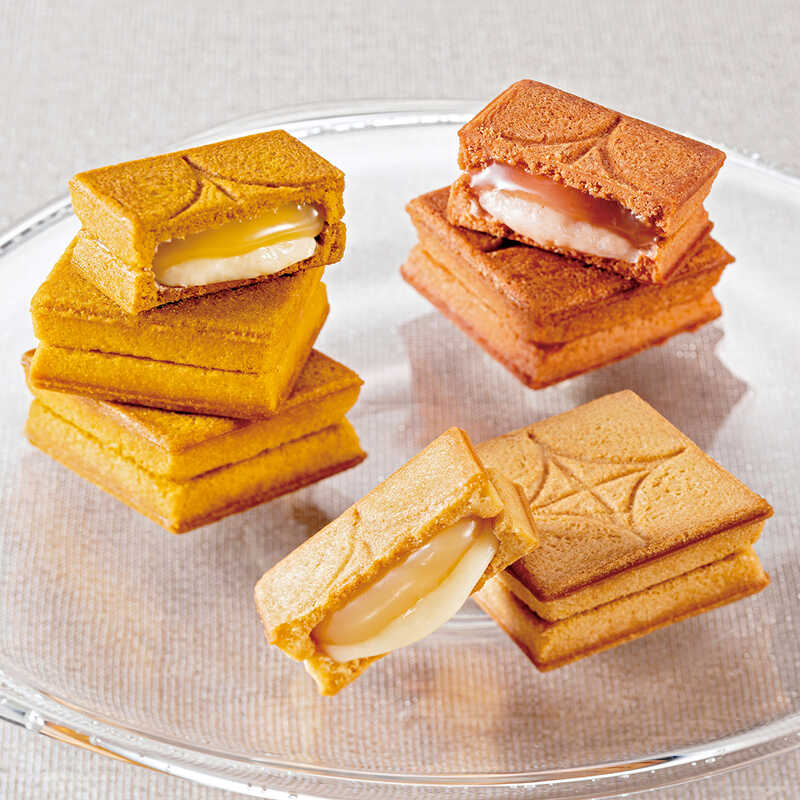 瀬戸内レモンの爽やかな酸味を感じる〈檸檬〉、福岡県産のあまおう苺の華やかな香りを楽しめる〈あまおう苺〉の各地域の果実を味わえるフレーバーと定番のバターサンドを詰め合わせました。